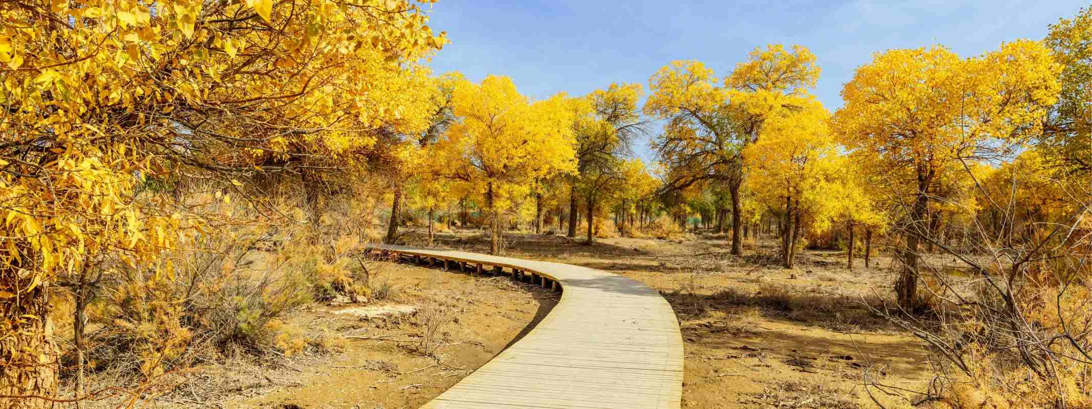 Walk through the poplar groves from Bridge 1 to Bridge 8, photograph sunrise and sunset, explore the “Strange Forest” and Heicheng ruins, and reflect on the poplar’s legendary resilience.