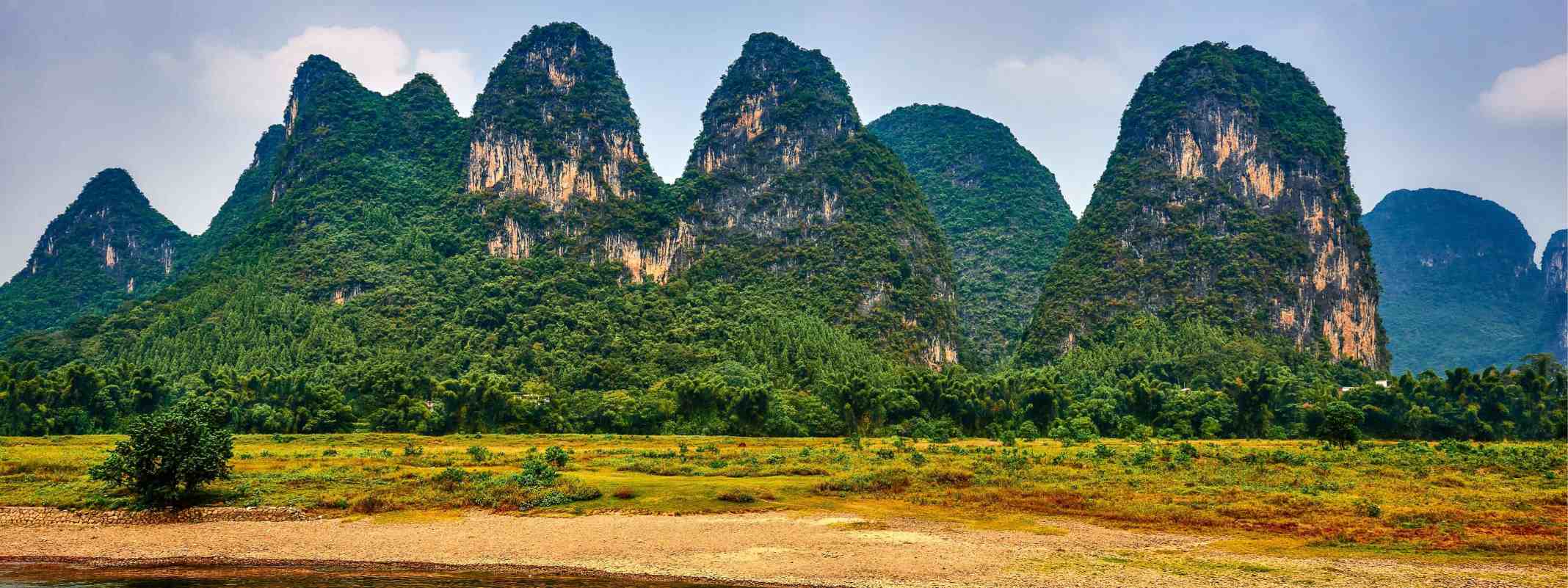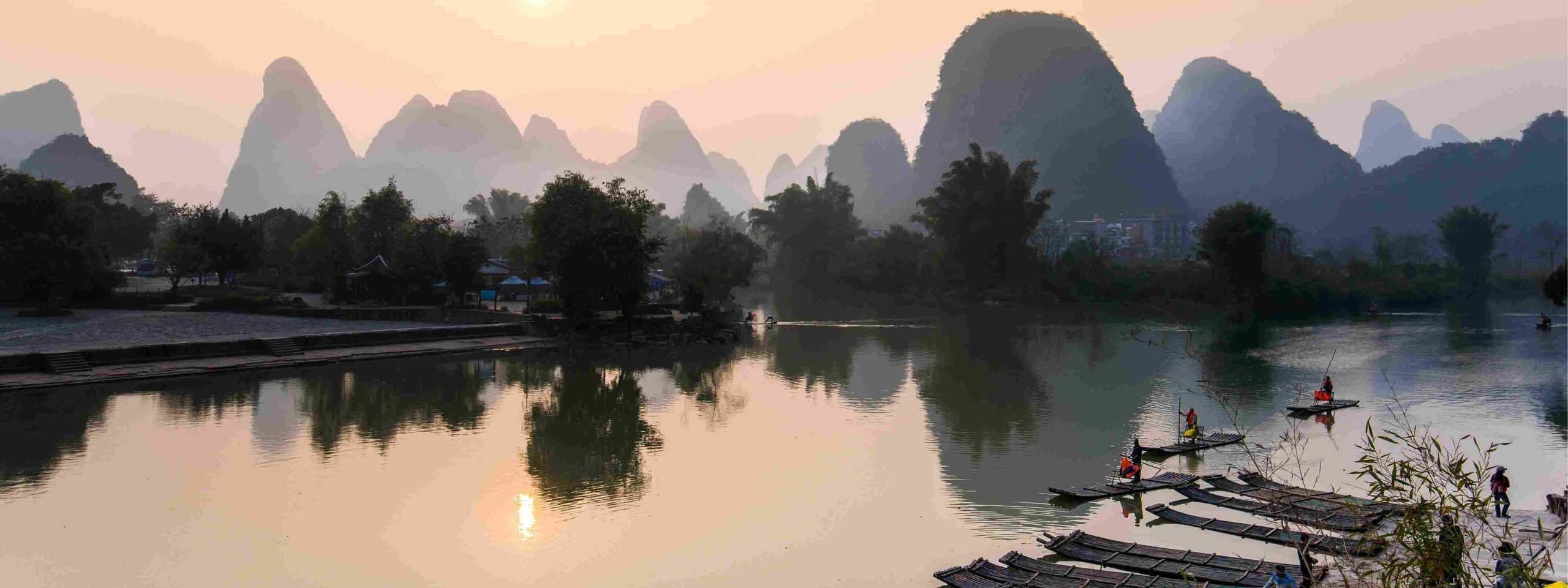 November offers ideal conditions on the Li River—clear skies, crisp air, and tranquil waters perfect for bamboo‑rafting. The iconic karst peaks are softly accented by lingering autumn foliage.